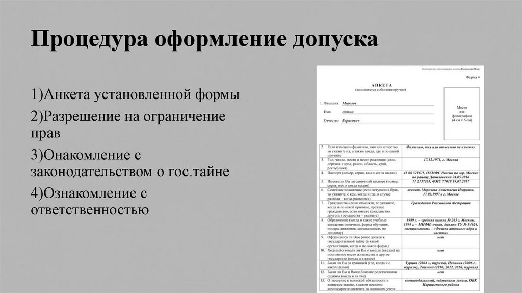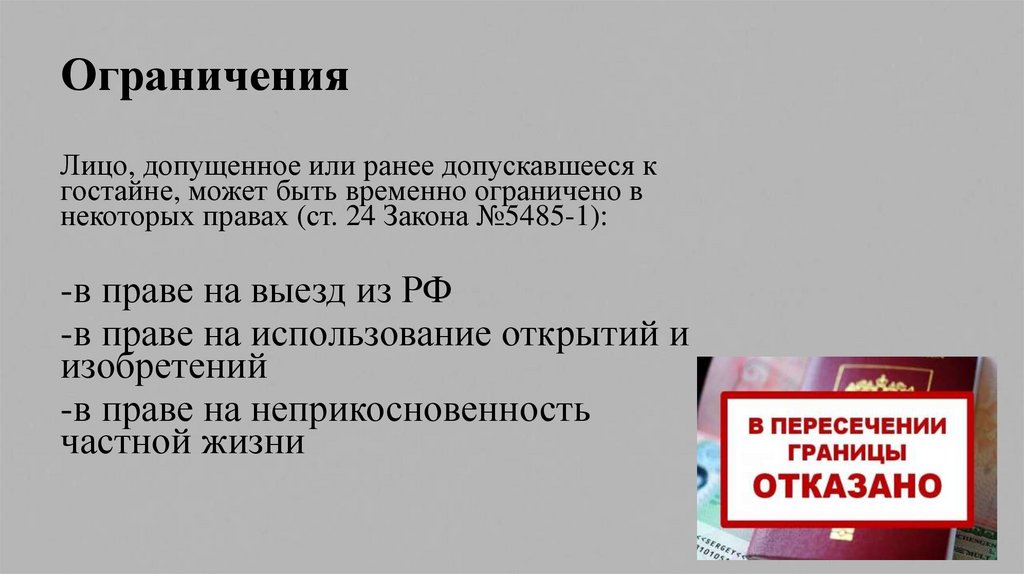 ОграниченияЛицо, допущенное или ранее допускавшееся к