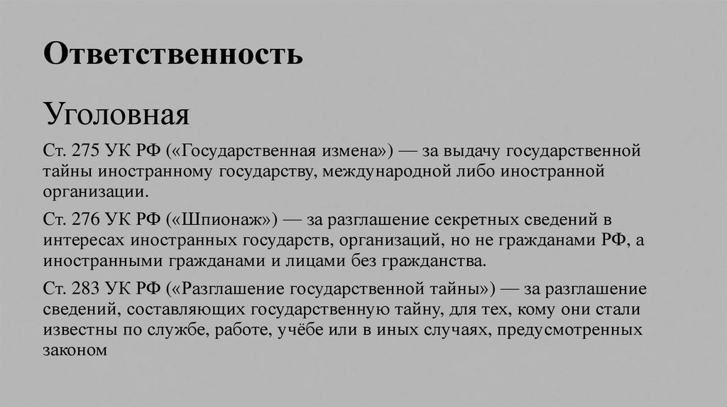 Ст. 283 УК РФ («Разглашение государственной тайны») — за разглашение