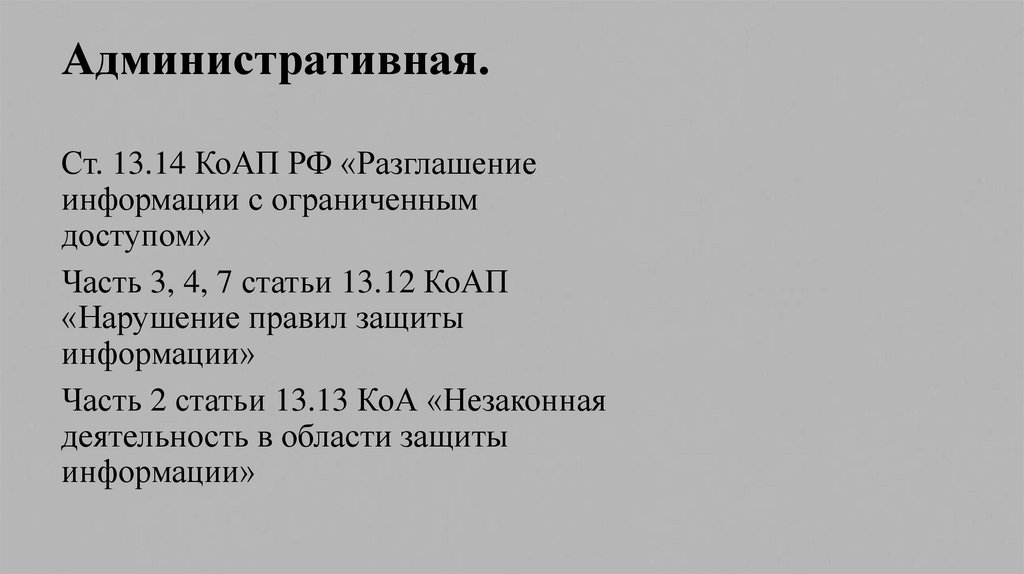 Административная.Ст. 13.14 КоАП РФ «Разглашение