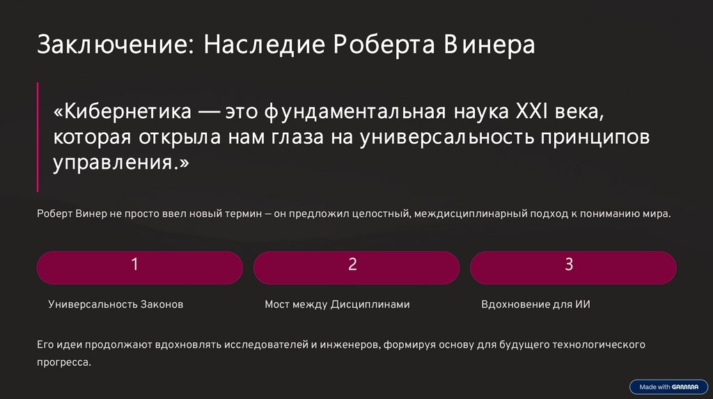 Заключение: Наследие Роберта В инера«Кибернетика — это ф ундаментал ьная наука XXI века,
