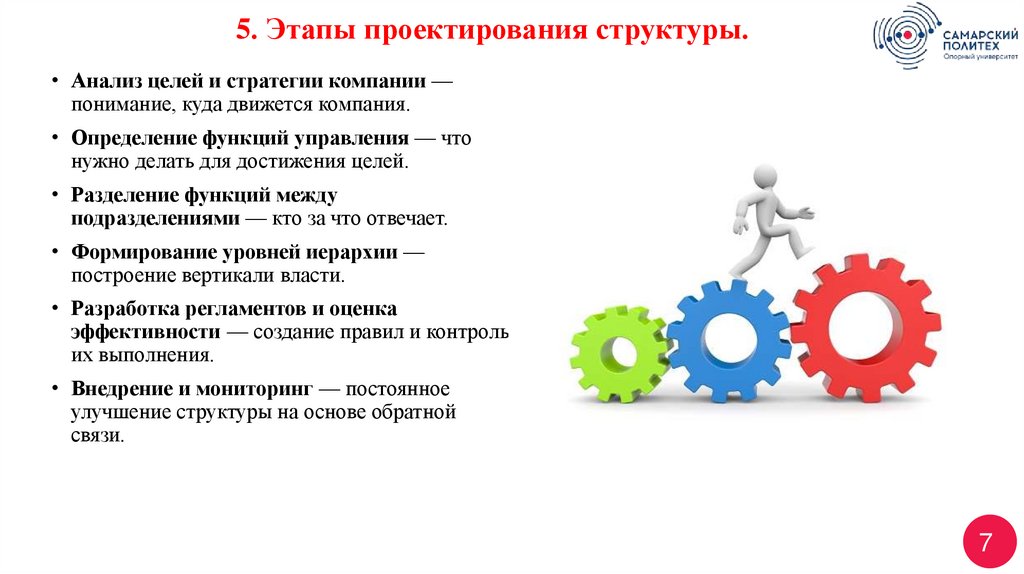 5. Этапы проектирования структуры.• Анализ целей и стратегии компании —
