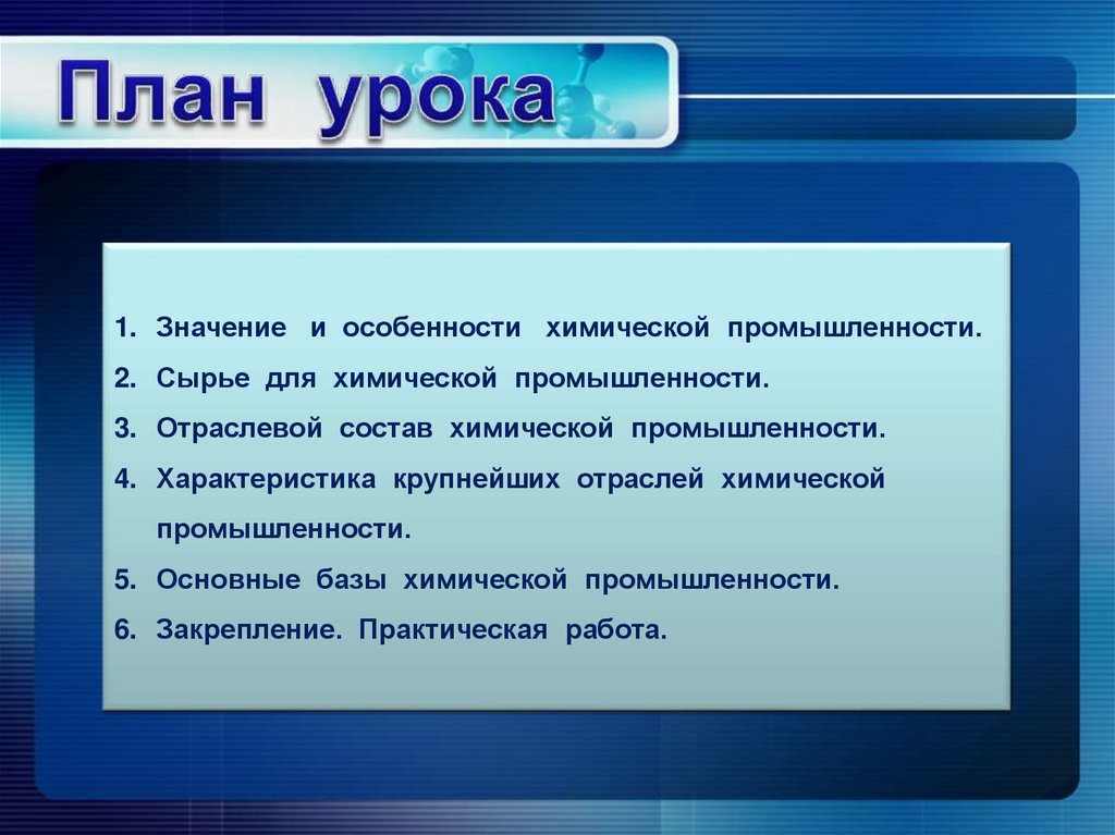 1. Значение и особенности химической промышленности.2. Сырье для химической промышленности.