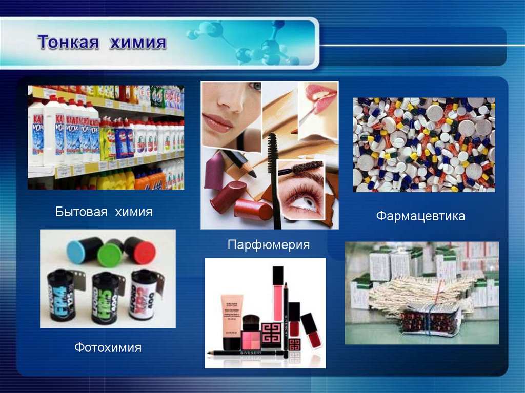 препаратов); фотохимия (производство разнообразных фотоматериалов);
