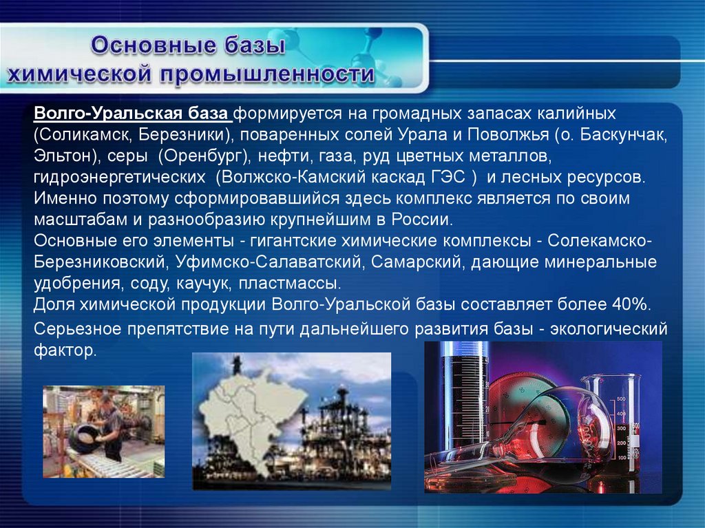 Доля химической продукции Волго-Уральской базы составляет более 40%.