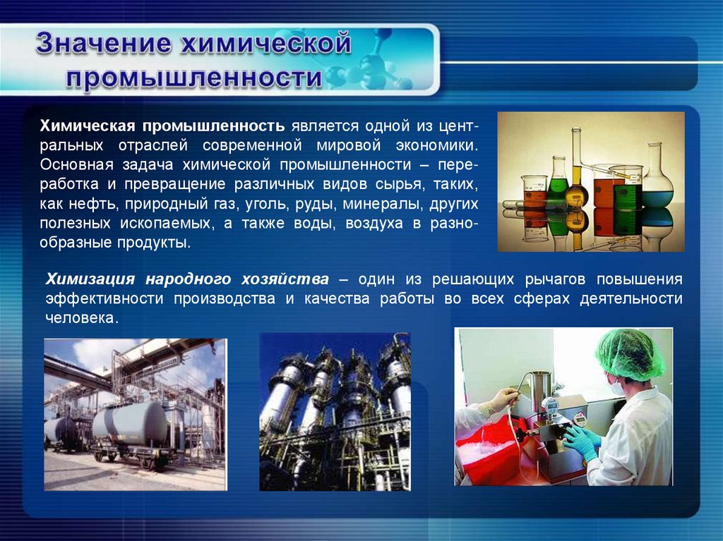 Химическая промышленность является одной из центральных отраслей современной мировой экономики.Основная задача химической промышленности – переработка и превращение различных видов сырья, таких,