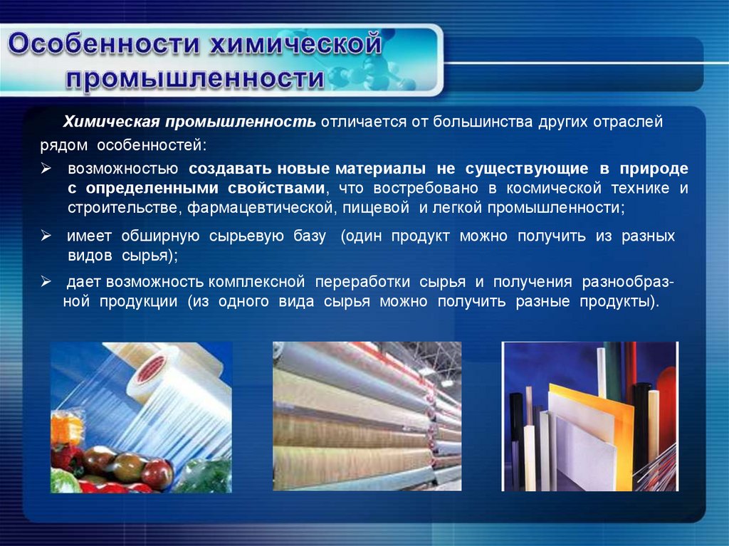 Химическая промышленность отличается от большинства других отраслейрядом особенностей: