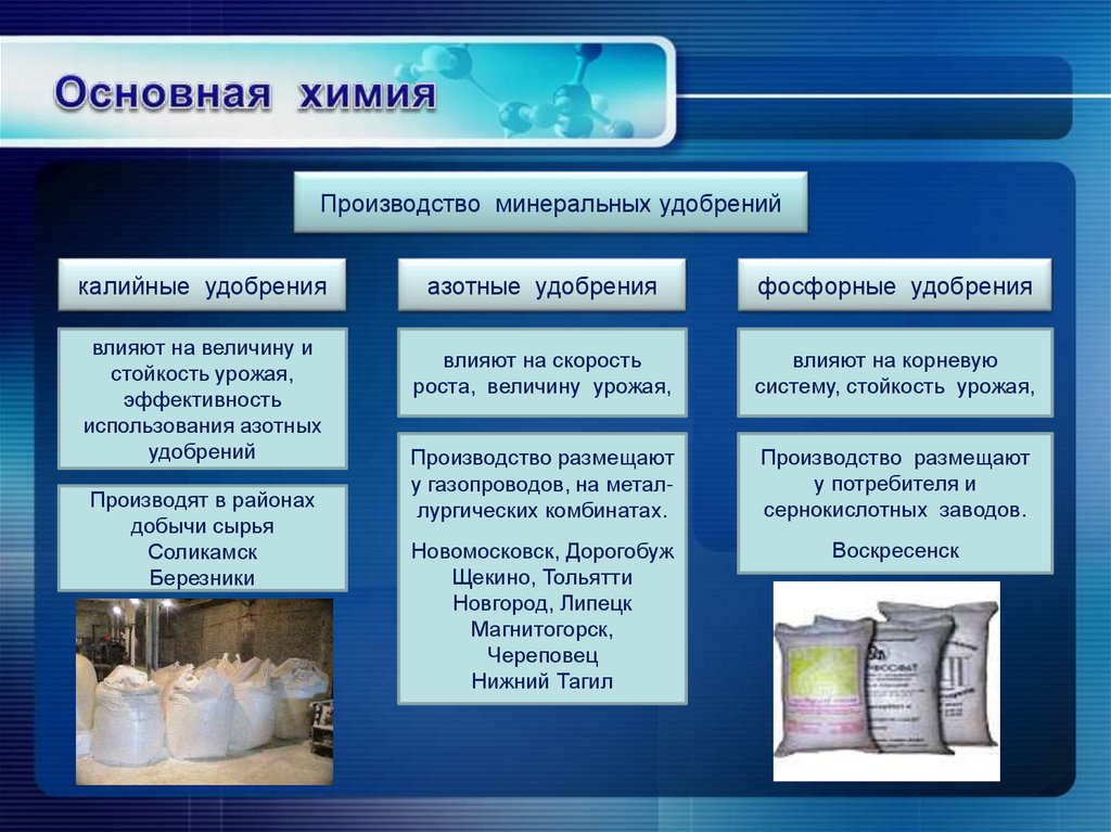 • азотные удобрения (Щекино, Липецк, Новомосковск, Новгород, Дзержинск),