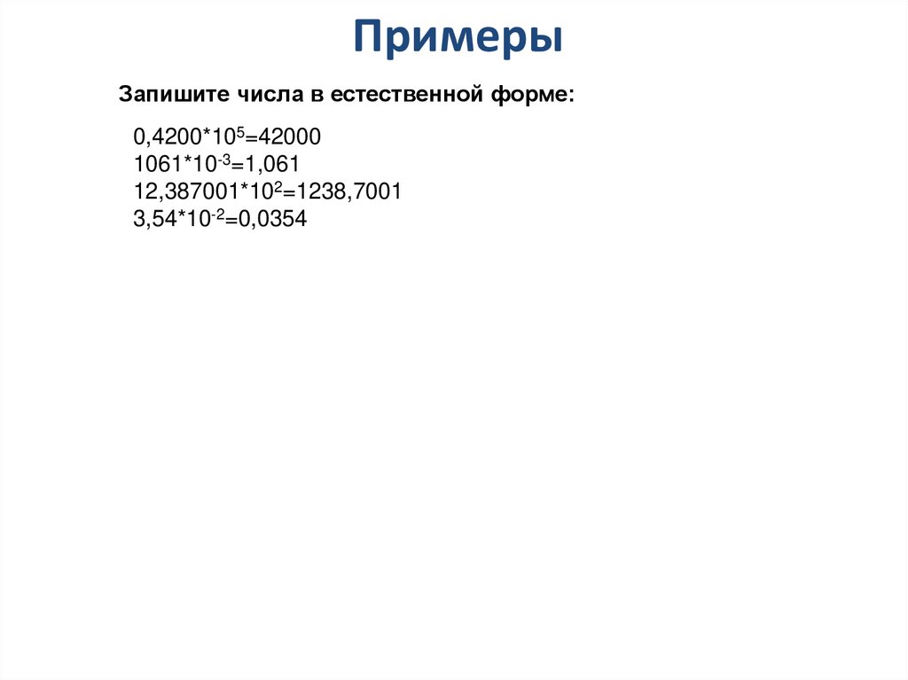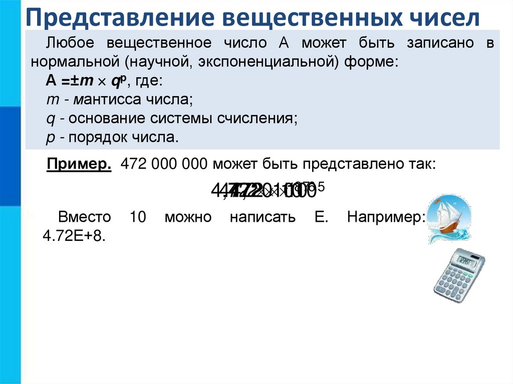 Представление вещественных чиселЛюбое вещественное число А может быть записано в