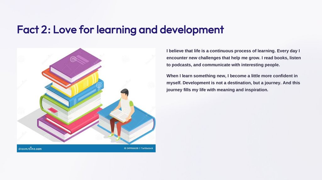Fact 2: Love for learning and developmentI believe that life is a continuous process of learning. Every day I