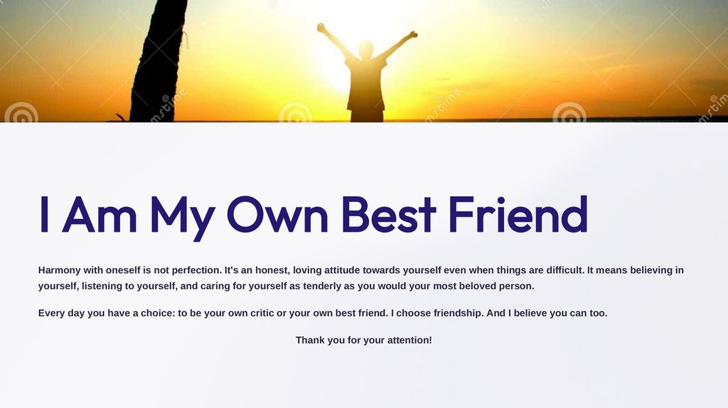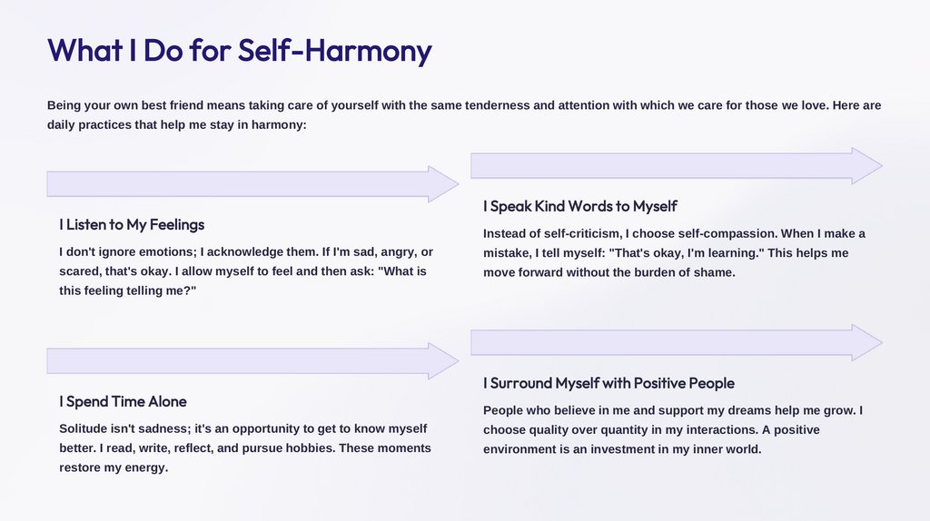 I Am My Own Best FriendHarmony with oneself is not perfection. It's an honest, loving attitude towards yourself even when things are difficult. It means believing in