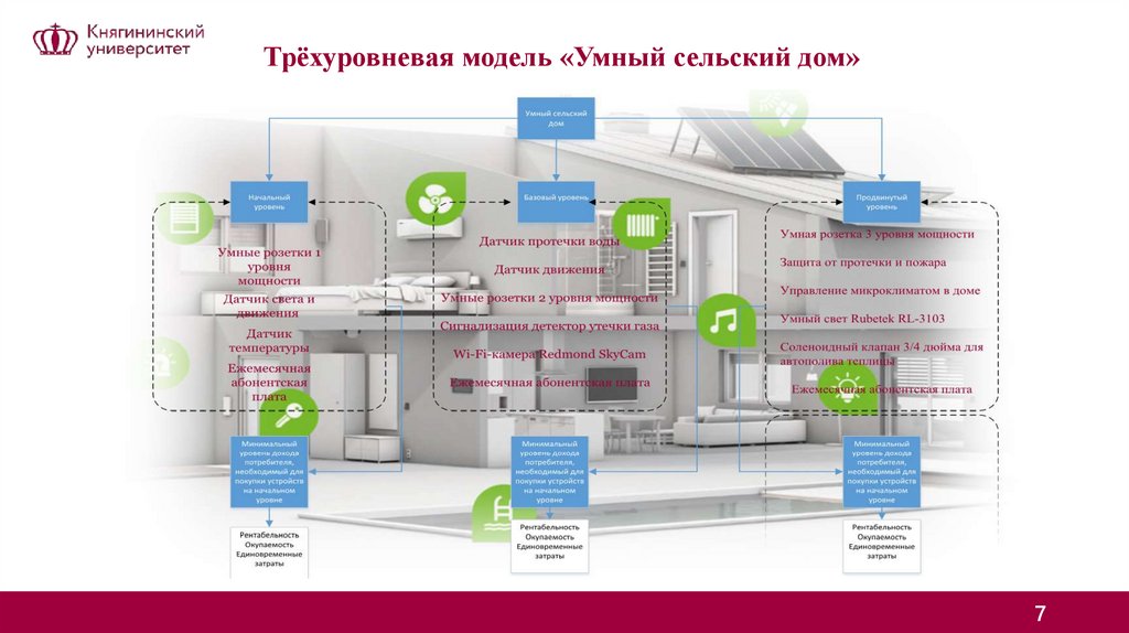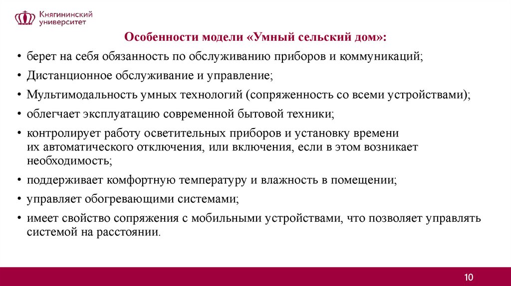 Особенности модели «Умный сельский дом»:• берет на себя обязанность по обслуживанию приборов и коммуникаций;