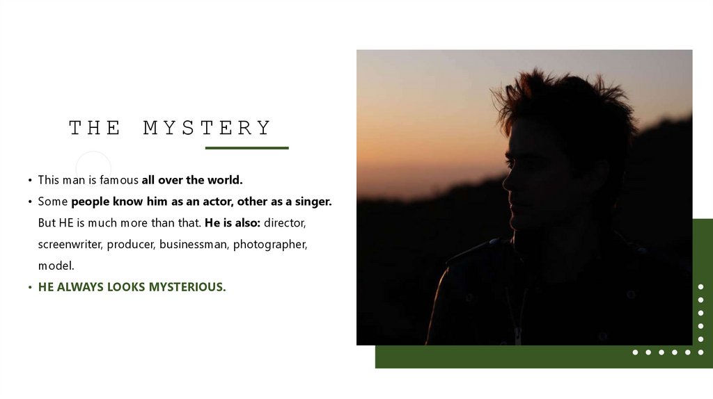 • HE ALWAYS LOOKS MYSTERIOUS.