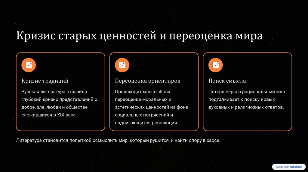 Литература становится попыткой осмыслить мир, который рушится, и найти опору в хаосе.