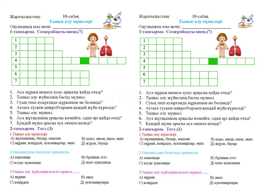 3.Тыныс алу жүйесінің негізгі мүшесі-.......