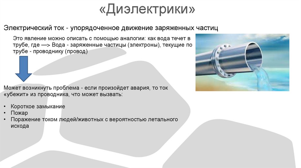 трубе, где —> Вода - заряженные частицы (электроны), текущие по