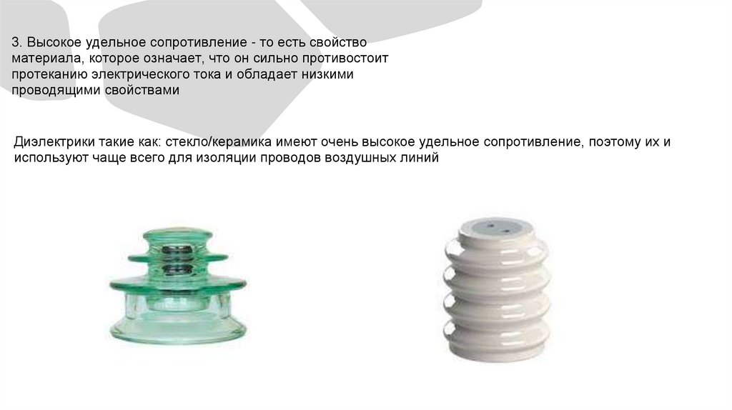 3. Высокое удельное сопротивление - то есть свойствоматериала, которое означает, что он сильно противостоит