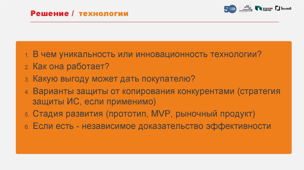 Решение / технологии1. В чем уникальность или инновационность технологии?