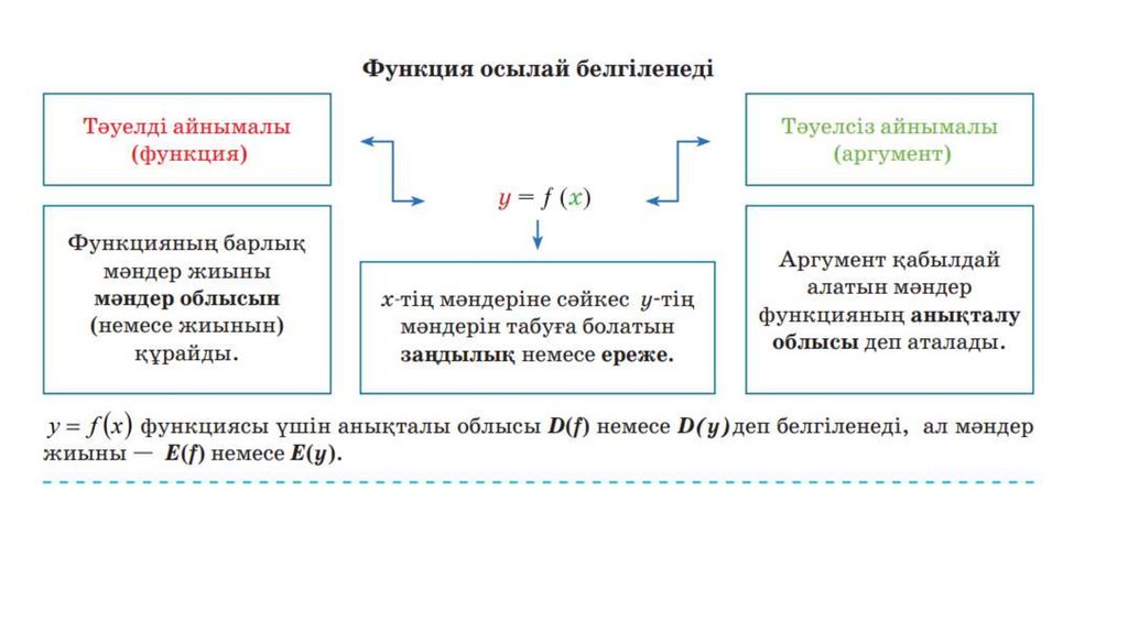 Егер y-тің x – ке тәуелділігі функция болса онда оны мына түрде жазады.