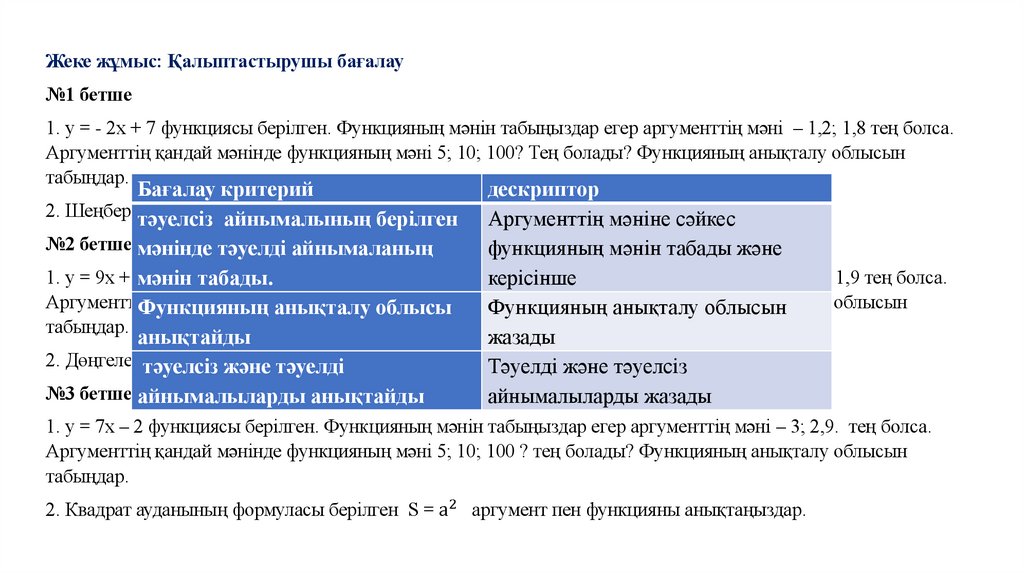 Жеке жұмыс: Қалыптастырушы бағалау№1 бетше