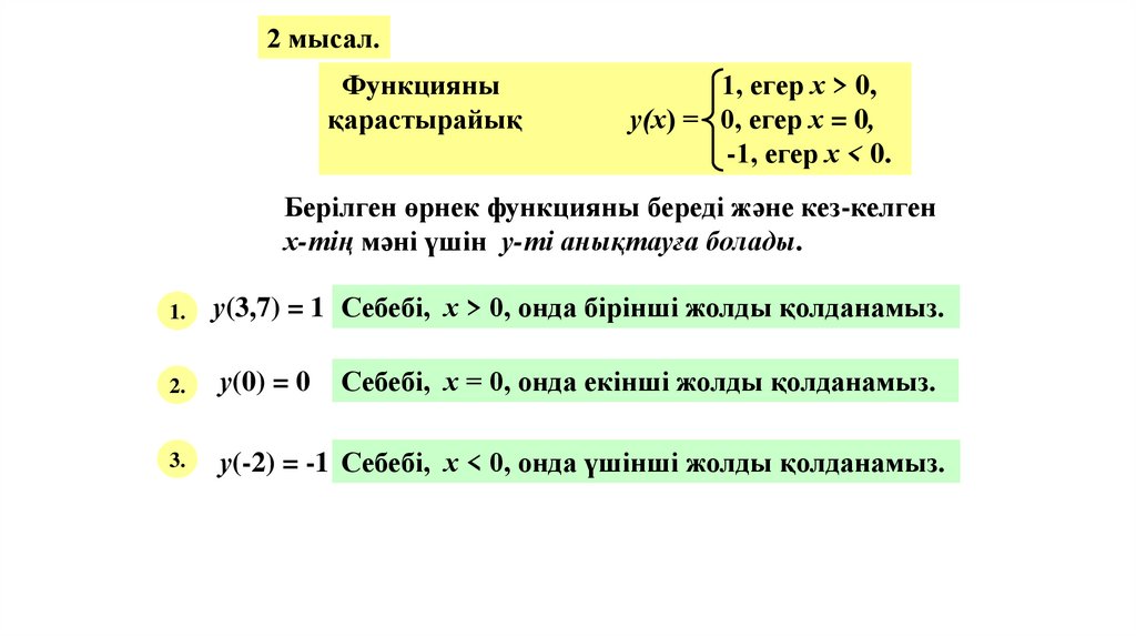 функцияның мәнін есептеу нәтижесінде анықтауға