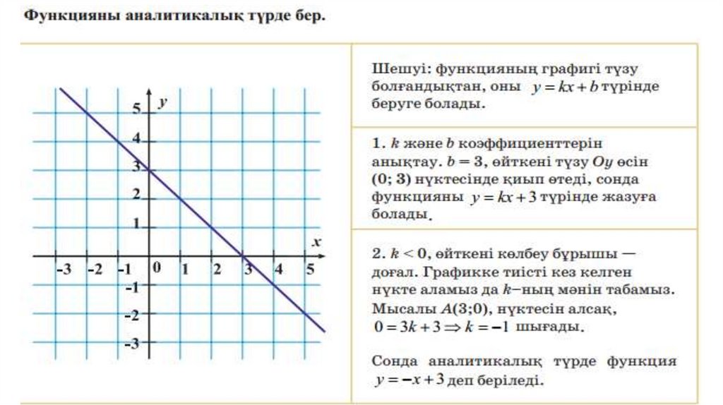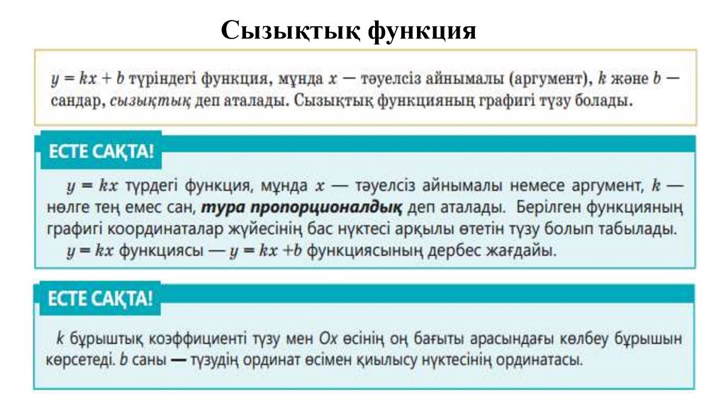 7.5.1.10 y=kx+b сызықтық функцияның анықтамасын біледі, оның