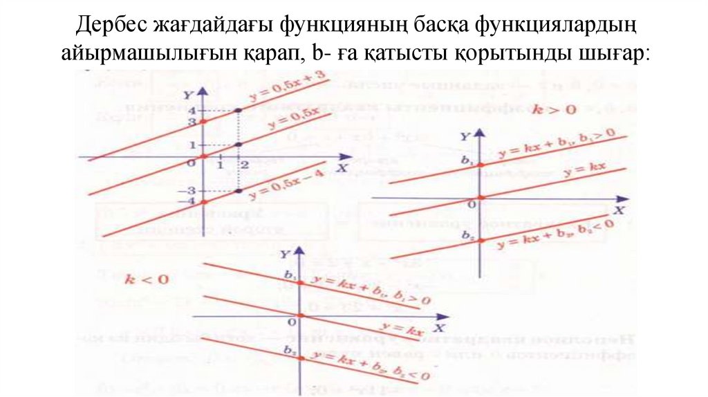 графигін салады және оның k мен b-ға қатысты орналасуын