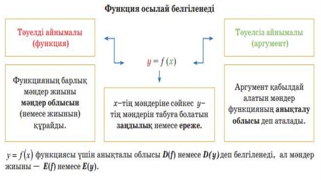 f(x) = y теңдiгi арқылы жазамыз.