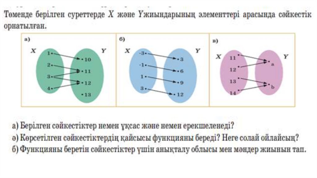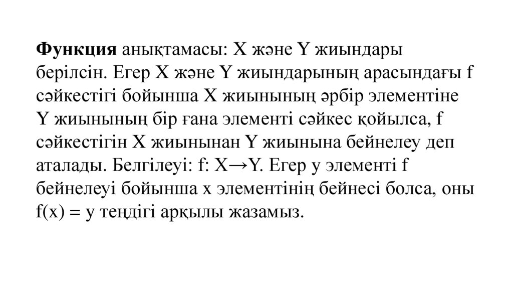 Функция анықтамасы: X және Y жиындарыберiлсiн. Егер X және Y жиындарының арасындағы f