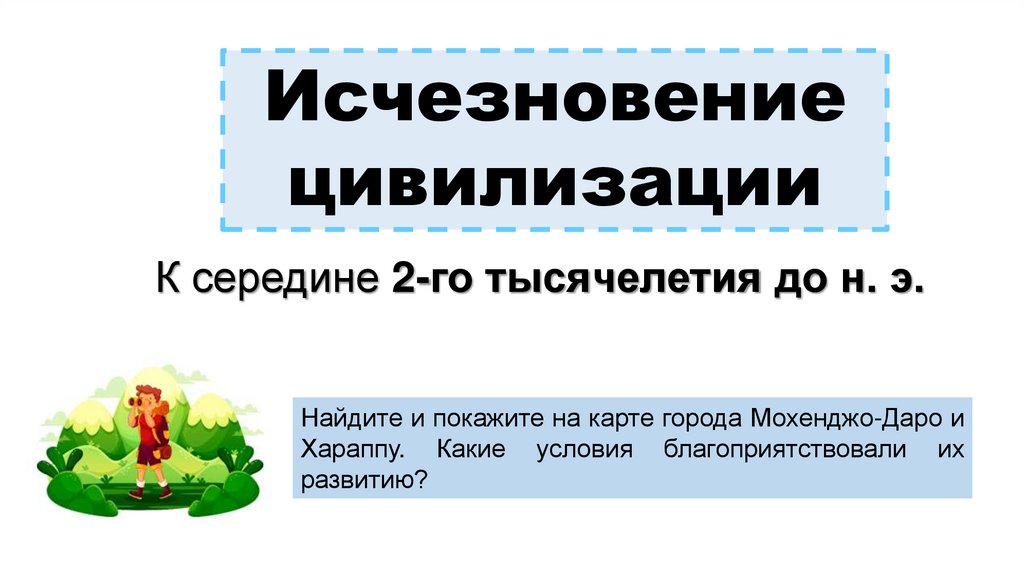 Середина 3-го тысячелетия до н. э.В долине реки Инд жили земледельцы.