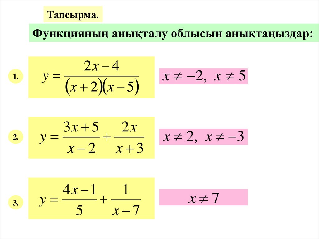 Тапсырма.Функцияның анықталу облысын анықтаңыздар: