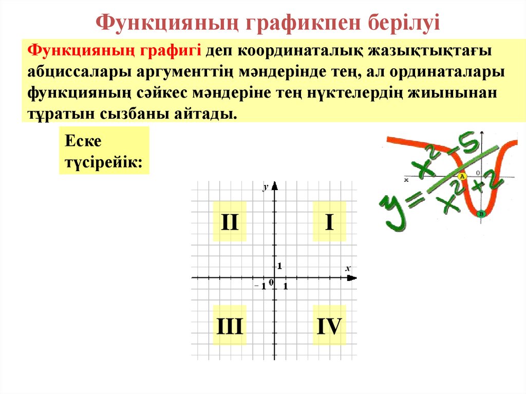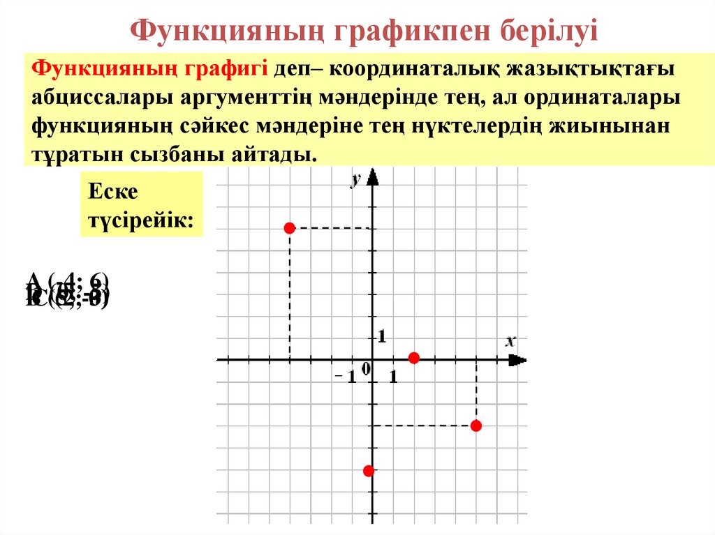 Функцияның графикпен берілуіФункцияның графигі деп координаталық жазықтықтағы