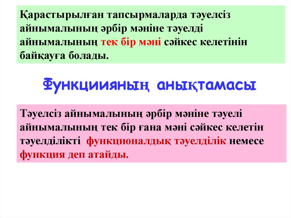 Әрбір х мәніне тек бір ғана у мәні сәйкес келеді.