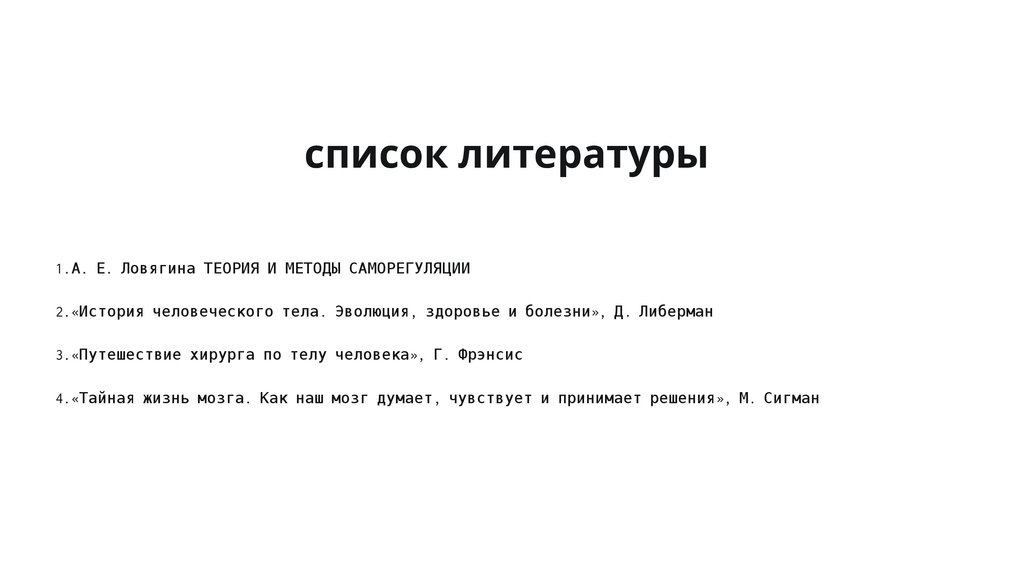 список литературы1.А. Е. Ловягина ТЕОРИЯ И МЕТОДЫ САМОРЕГУЛЯЦИИ