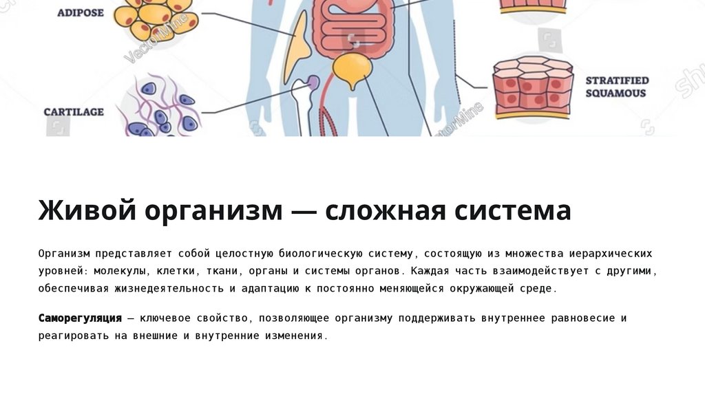 Живой организм — сложная системаОрганизм представляет собой целостную биологическую систему , состоящую из множества иерархических