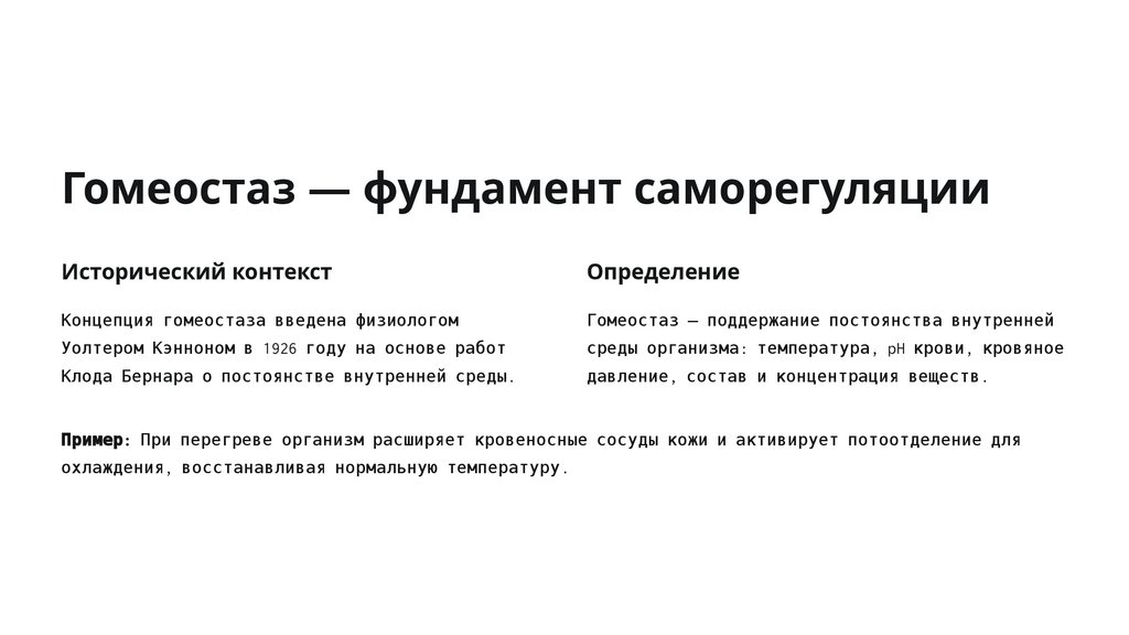 Гомеостаз — фундамент саморегуляцииИсторический контекст