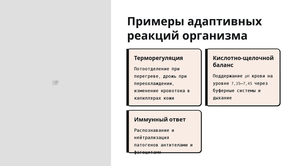 Примеры адаптивныхреакций организма