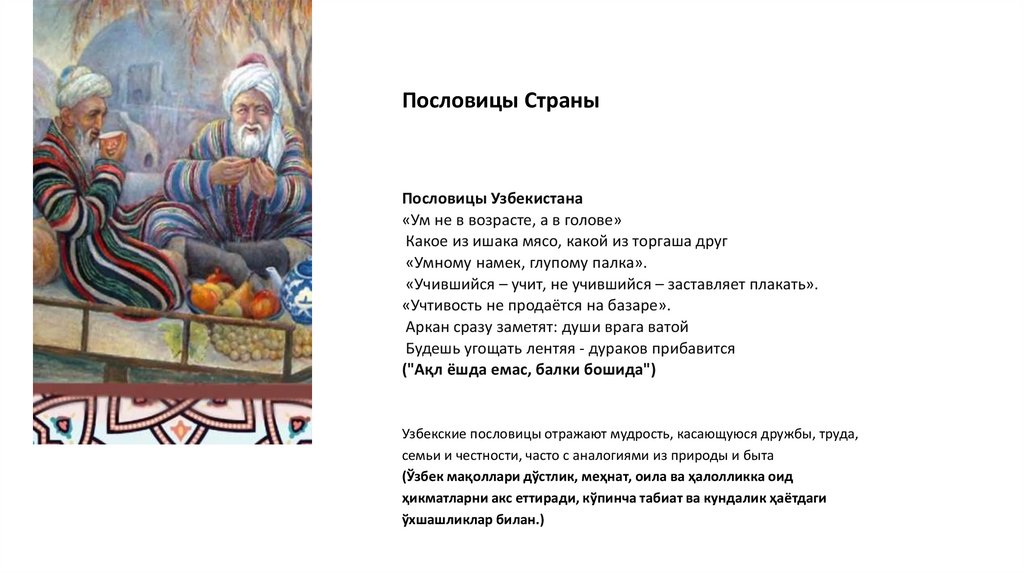 Пословицы СтраныПословицы Узбекистана
