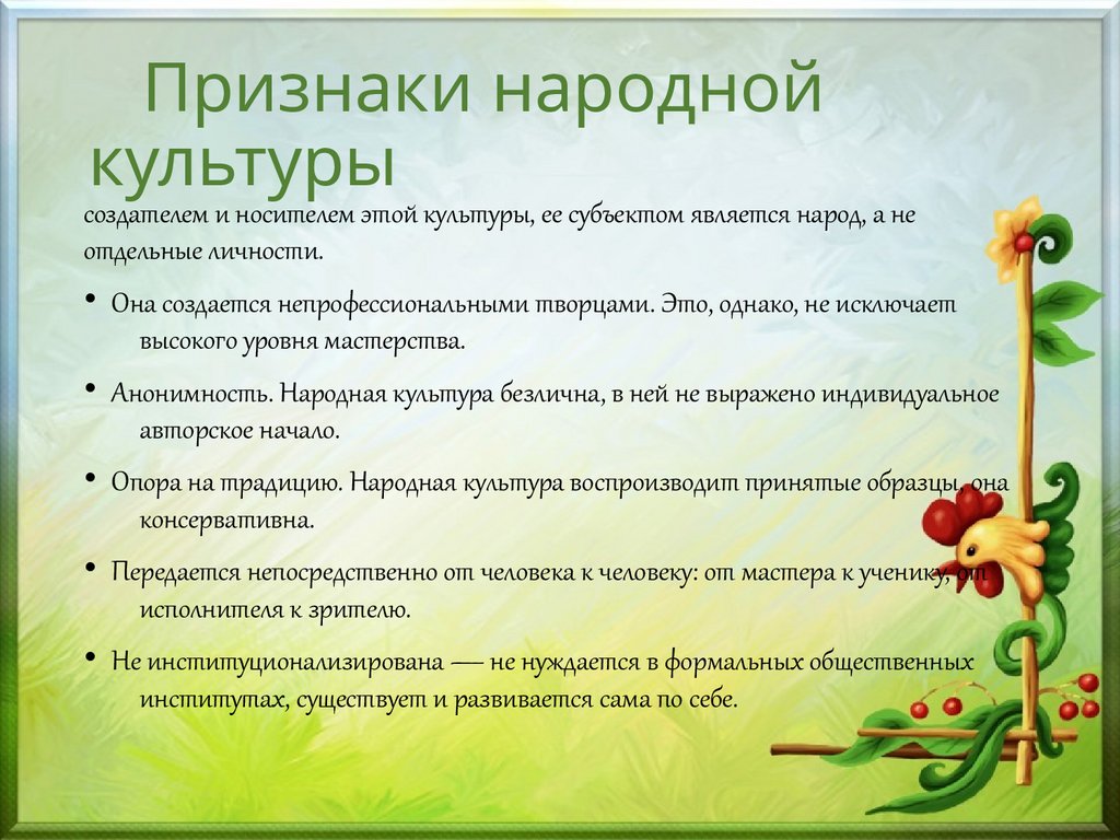 Признаки народнойкультуры