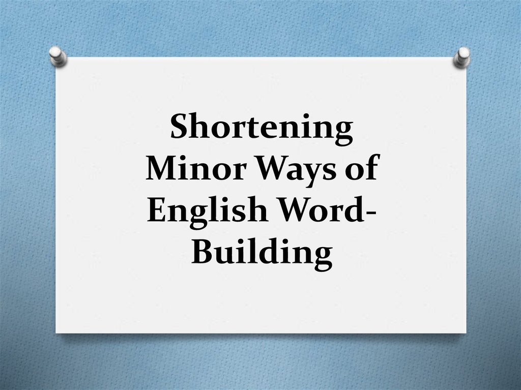 3. V. Main ways of modern English word building IV.4. Shortening / Curtailment / Contraction