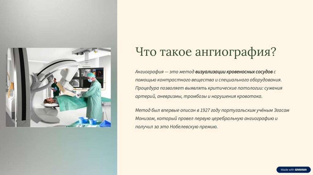 Монизом, который провел первую церебральную ангиографию и