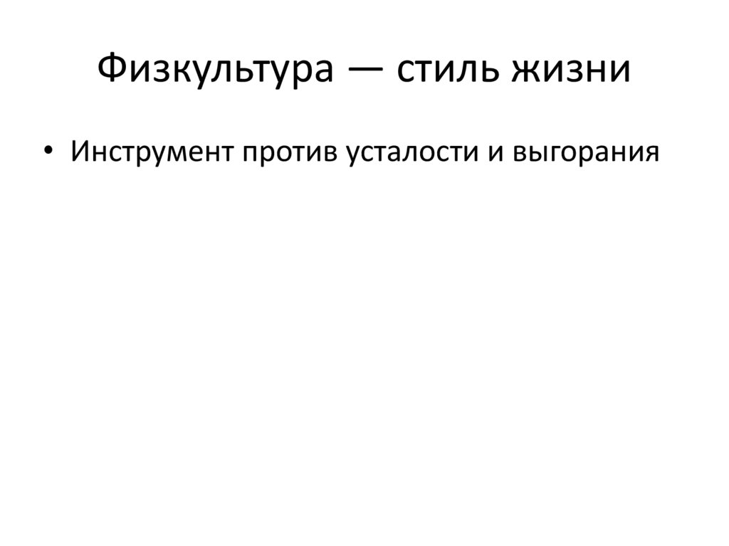 Физкультура — стиль жизни• Инструмент против усталости и выгорания