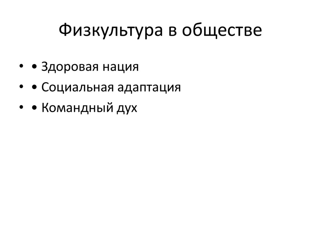Физкультура в обществе• • Здоровая нация