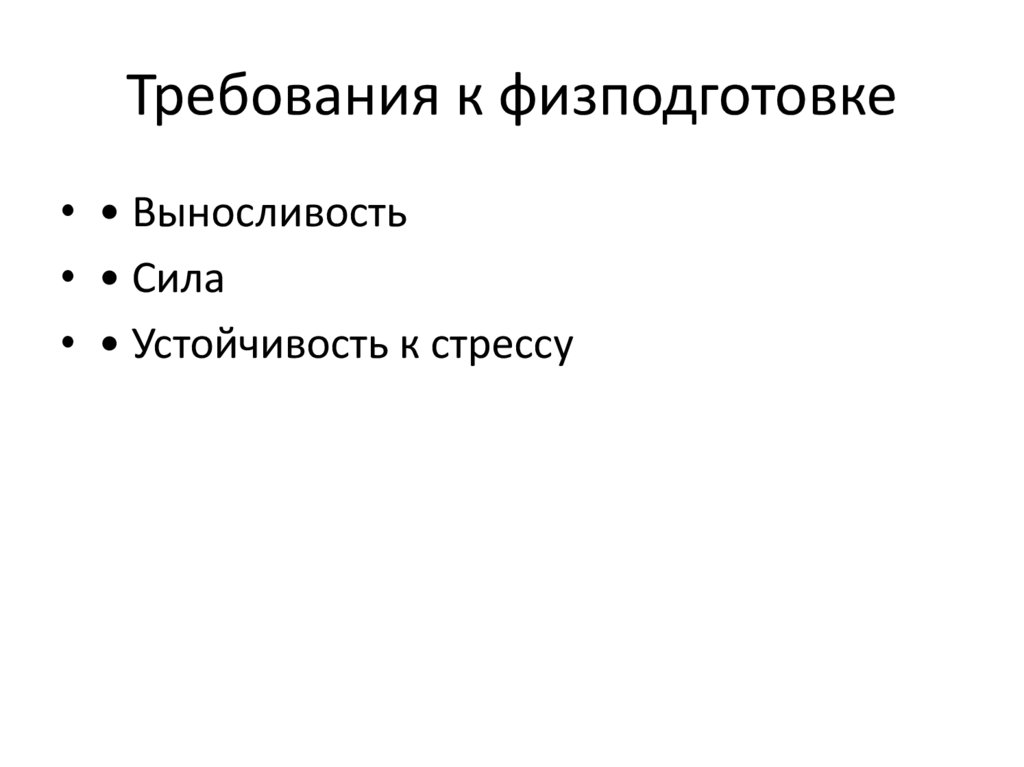 Требования к физподготовке• • Выносливость