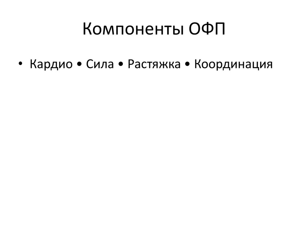 Компоненты ОФП• Кардио • Сила • Растяжка • Координация