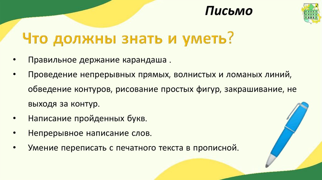 Проведение непрерывных прямых, волнистых и ломаных линий,