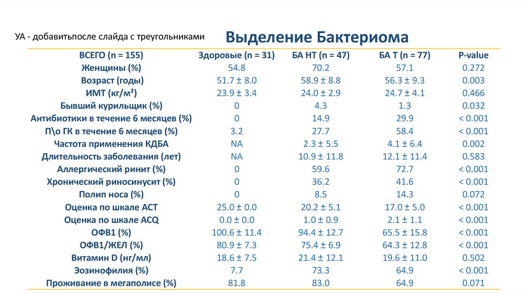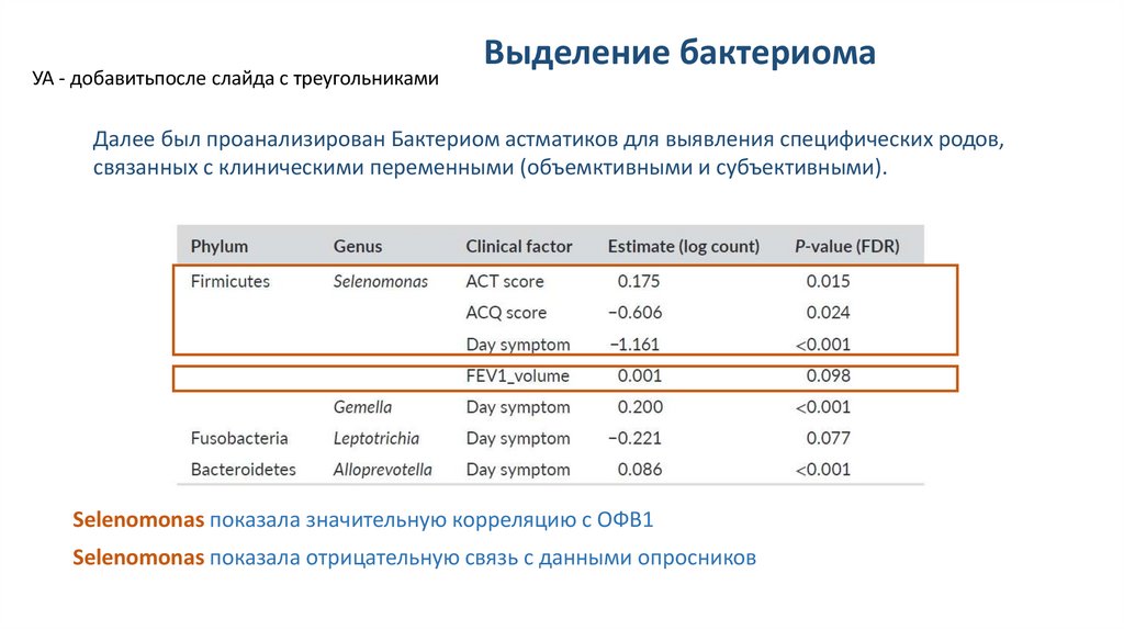 УА - добавитьпосле слайда с треугольникамиВыделение Бактериома