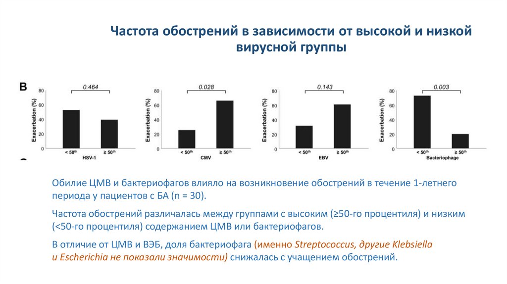Обилие ЦМВ и бактериофагов влияло на возникновение острых обострений в течение 1-летнего периода у пациентов с