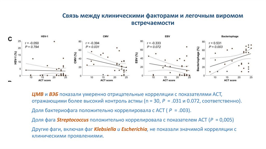 ЦМВ и ВЭБ показали умеренно отрицательные корреляции с показателями ACT,