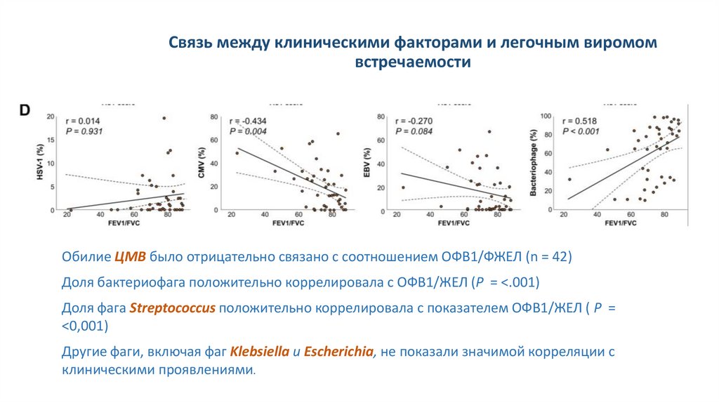 Доля бактериофага положительно коррелировала с ОФВ1/ЖЕЛ (P = <.001)