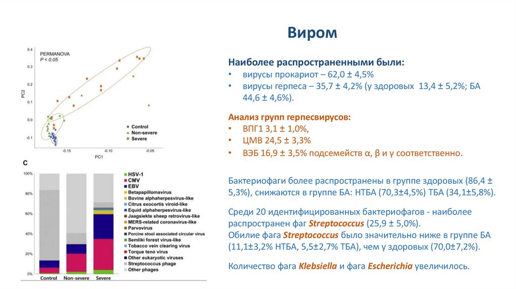 В отличие от ЦМВ и ВЭБ, доля бактериофага (именно Streptococcus, другие Klebsiella